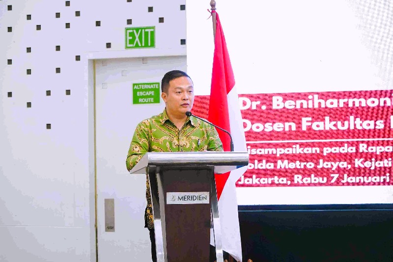 Komitmen tersebut tercermin dalam rapat koordinasi penerapan KUHP dan KUHAP baru yang digelar di Hotel Le Meridien, Jakarta, pada Rabu, 7 Januari 2026. Forum ini menghadirkan Dr. Beniharmoni Harefa, S.H., LL.M., Wakil Dekan Bidang Akademik Fakultas Hukum Universitas Pembangunan Nasional Veteran Jakarta (UPNVJ), sebagai narasumber utama. Sebanyak 250 peserta yang terdiri atas penyidik, jaksa, dan aparat penegak hukum dari Polda Metro Jaya, Kejaksaan Tinggi DKI Jakarta, Jawa Barat, dan Banten turut hadir untuk mendalami perubahan mendasar dalam hukum pidana nasional.
